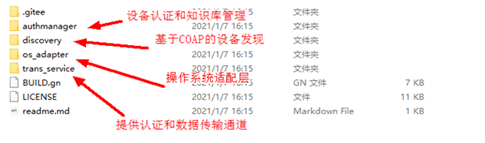 各个设备以服务的形态推送、发布,发布后周边的设备可以发现、连接并与之通讯交互,源代码位于discovery\discovery_service\source目录中。