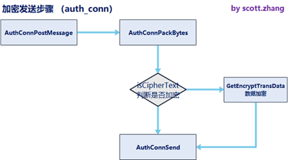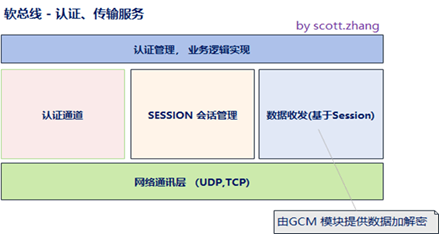 trans_service模块依赖于系统OS提供的网络socket服务,向认证模块提供认证通道管理和认证数据的收发;向业务模块提供session管理和基于session的数据收发功能,并且通过GCM模块的加密功能提供收发报文的加解密保护。