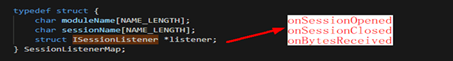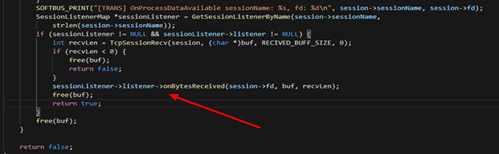 会话数据到达的回调函数,调用上层应用注册的onBytesReceived。接收会话报文并进行格式解析,执行相应动作。如在分布式调度模块中,可能是START_FA命令。