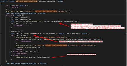 启动总线后即创建了基于TCP的会话管理服务,服务的任务线程为SelectSessionLoop,处理所有的会话数据的接收。