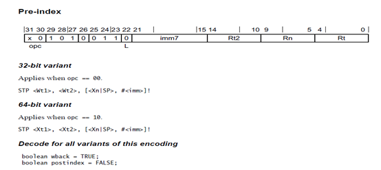 类型2、STP <Xt1>, <Xt2>, [<Xn|SP>, #<imm>]!