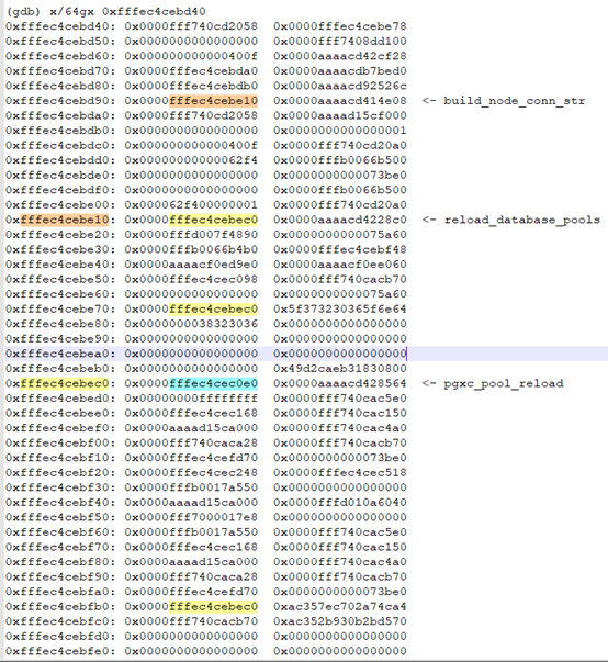 查看调用者0xfffec4cebe10+8为reload_database_pools