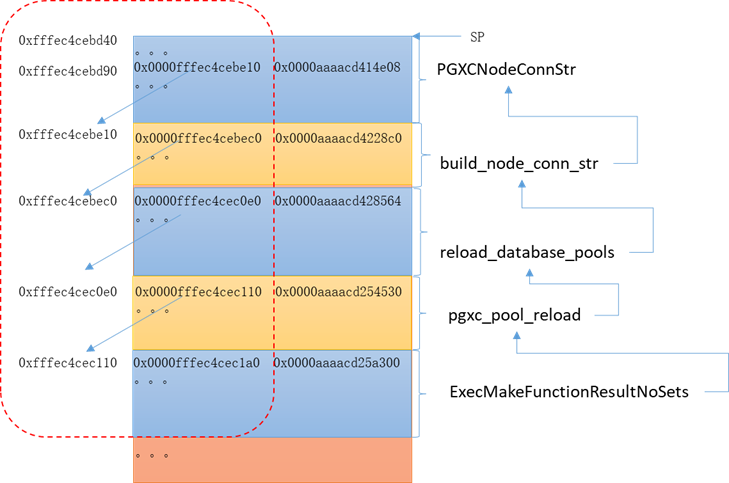 因此就找到了下一级的frame对应的栈顶和上一级的LR返回指令,反解,可以得到函数build_node_conn_str
