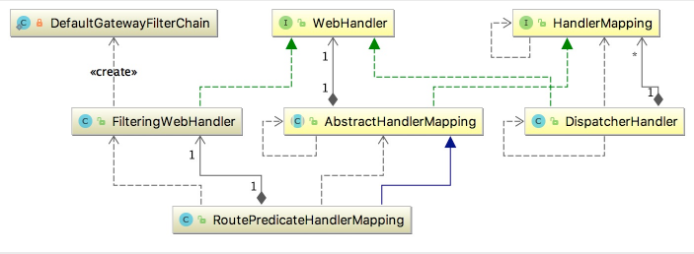 请求到达网关之后,会有各种Web处理器对请求进行匹配与处理,下图为Spring Cloud Gateway中主要涉及到的WebHandler: