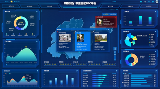 智慧园区IOC平台能够全面展示园区内各维度的态势:安全态势、人员态势、车辆态势、事件态势;支持视频实时预览、视频播放操作、录像回看、抓拍记录,随时监控异常问题。在人员管理方面,平台支持展示、查询园区人员详情、人员档案、房屋详情、房屋档案、园区详情、园区档案;支持展示、查询园区特殊人员详情、人员档案、房屋详情、房屋档案、园区详情、园区档案;支持展示、查询访客人员数据;确保能够精准掌握园区人员详细信息。