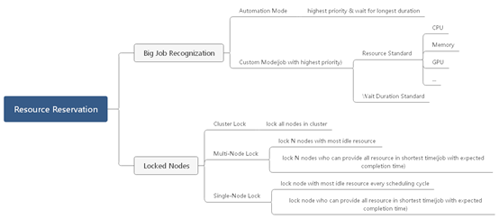 客观来说,满足条件的作业通常不止一个,可以为目标作业组或单个目标作业预留资源。考虑到资源预留必然引起调度器性能在吞吐量和延时等方面的影响,v1.1.0采用了单个目标作业的方式。