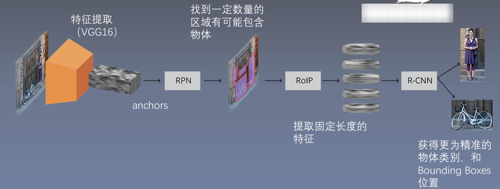 生成anchors->softmax分类器提取foreground anchors->bbox 回归positive anchors->Proposal Layer生成proposals