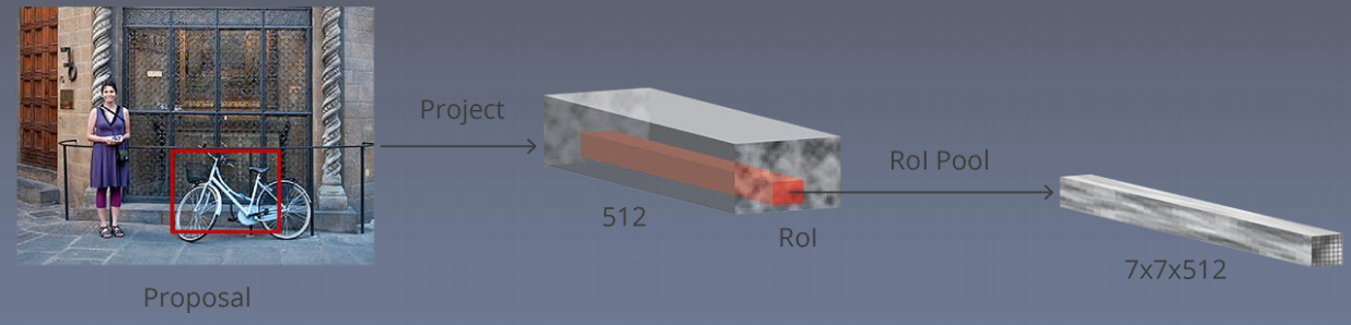 - 由于proposal对应的尺寸为MxN,所以首先使用spatial_scale参数将其映射回(M/16)x(N/16)大小的feature map。