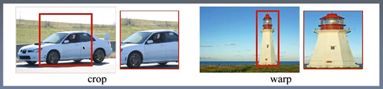这其实来自于更早提出的SPP Net,RPN网络提取出的proposal大小是会变化的,而分类用的全连接层输入必须固定长度,所以必须有个从可变尺寸变换成固定尺寸输入的过程。在较早的R-CNN和Fast R-CNN结构中都通过对proposal进行拉升(warp)或裁减(crop)到固定尺寸来实现,拉升、裁减的副作用就是原始的输入发生变形或信息量丢失(图7),以致分类不准确。而ROI Pooling就完全规避掉了这个问题,proposal能完整的pooling成全连接的输入,而且没有变形,长度也固定。