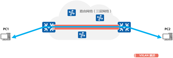 - VXLAN(Virtual eXtensible Local Area Network,虚拟扩展局域网)在本质上属于一种VPN技术,能够在任意路由可达的网络上叠加二层虚拟网络,通过VXLAN网关实现VXLAN网络内部的互通,同时,也可以实现与传统的非VXLAN网络的互通。