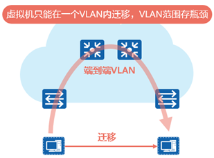 - 虚拟机迁移是指将虚拟机从一个物理机迁移到另一个物理机。为了保证虚拟机迁移过程中业务不中断,则需要保证虚拟机的IP地址保持不变,这就要求虚拟机迁移必须发生在一个二层网络中。而传统的二层网络,将虚拟机迁移限制在了一个较小的局部范围内。