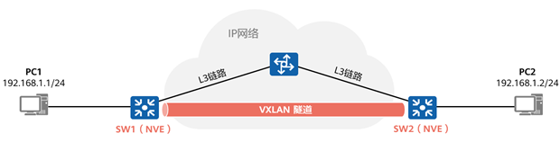 NVE是实现网络虚拟化功能的网络实体,可以是硬件交换机也可以是软件交换机。NVE在三层网络上构建二层虚拟网络,是运行VXLAN的设备。图中SW1和SW2都是NVE。