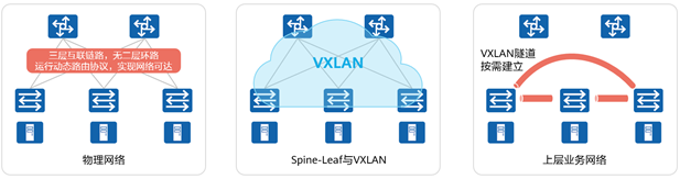 - 传统二层网络中的VLAN无法满足网络动态调整的需求。