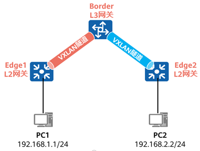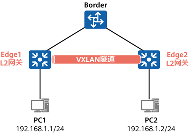 二层(L2)网关:实现流量进入VXLAN虚拟网络,也可用于同一VXLAN虚拟网络的同子网通信。例如下图中的Edge1和Edge2。