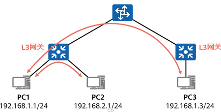 L3网关部署在一台设备上。所有跨子网的流量都通过网关转发,实现流量的集中管理。