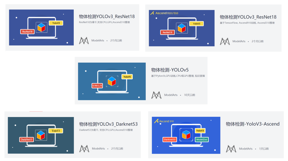 上述的YOLOv3_Resnet18、原版YOLOv3_Darknet53以及最新的YOLOv5算法都可以在ModelArts AI Gallery找到哦,不仅提供了预训练模型,同时也很方便使用,小白也能起送上手,奉上链接: