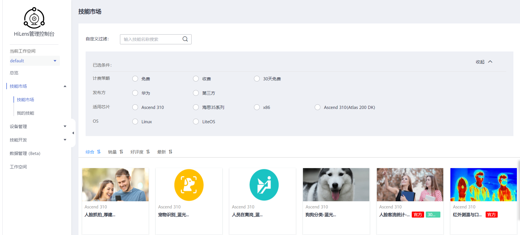 对了,我把技能发布到技能市场了,名字是Social-Distancing-using-YOLOv3-HDMI,审核通过后,大家就能够订阅使用了,技能市场汇集了官方和第三方开发的技能,能够高效便捷地将自己开发的技能分享给他人使用,而且从分享到他人订阅以及部署到HiLens使用,完全基于网络实现,非常方便,极大促进了技能的共享。