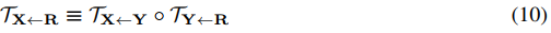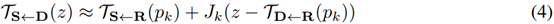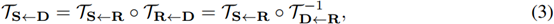 首先假设存在一个抽象的参考帧R,这样预测TS<-D可以拆分成预测TS<-R和TR<-D。注意R是抽象的,可以在推导中消除。引入R的好处是可以将S和D分离。