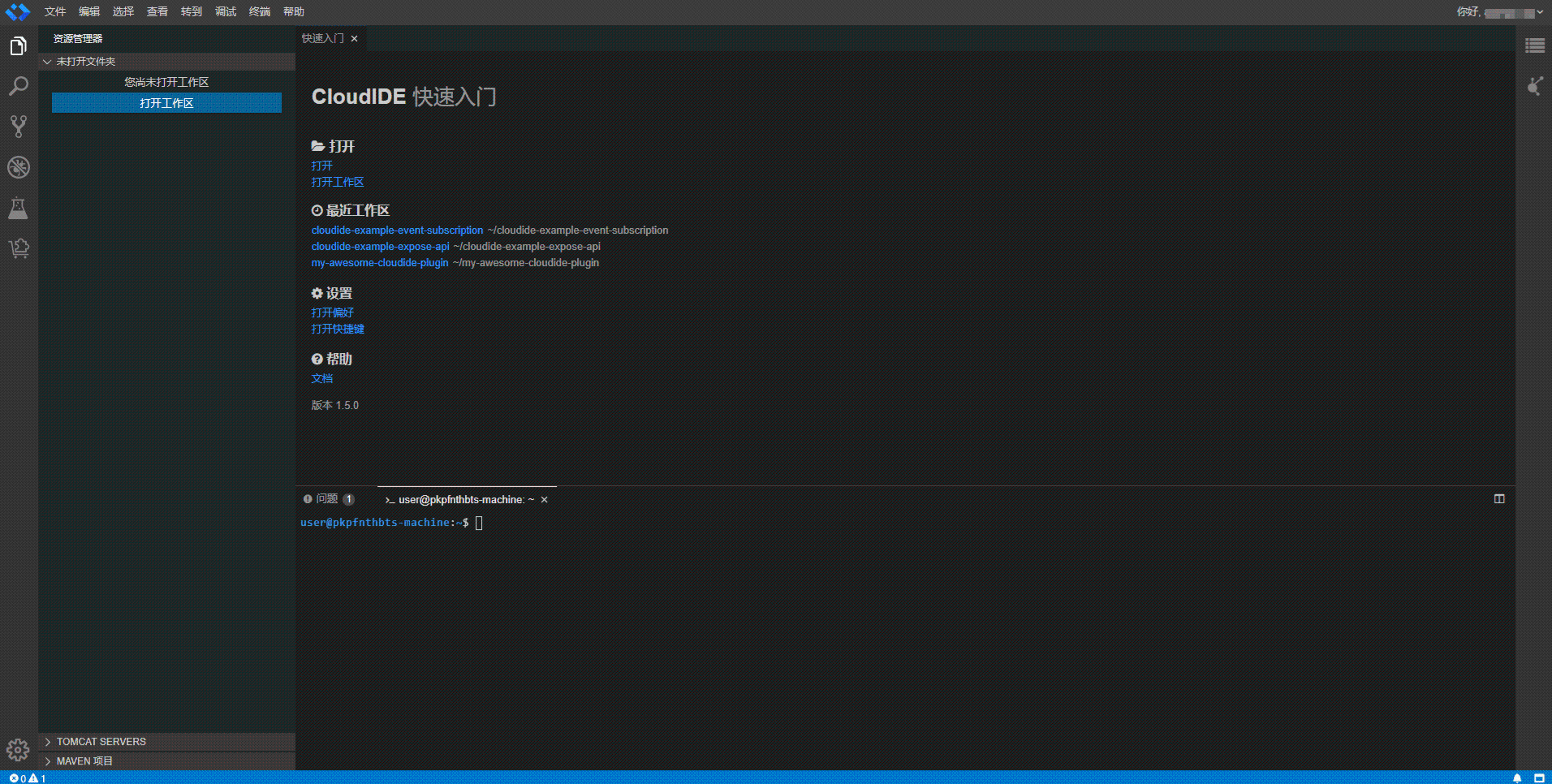 - 本次插件示例代码:https://github.com/HuaweiIDE/cloudide-example-event-subscription.git,可以通过文件->导入项目将代码导入到CloudIDE中。