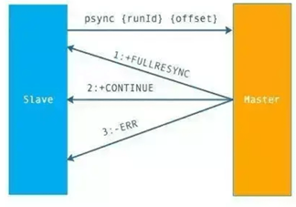 从节点发送psync[runId][offset]命令,主节点有三种响应: