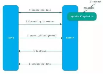 - 主节点根据偏移量把复制积压缓冲区里的数据发送给从节点,保证主从复制进入正常状态。