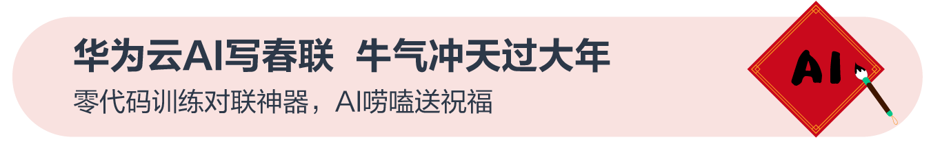 农历新年将至,用ModelArts训练一个AI对联神器,实现春联自动生成。华为云也推出了AI写春联、送祝福的小程序(微信搜索『EI体验空间』),一起来感受满满的年味。