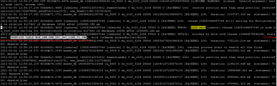 DETAIL: blocked by hold lock thread 281420014876320, statement <update $table_name XXXX>, hold lockmode RowExclusiveLock.
