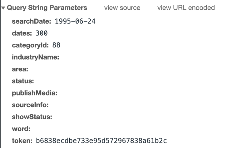 4、checkCaptcha是验证验证码的请求,并且返回了一个token用于之后列表页的请求
