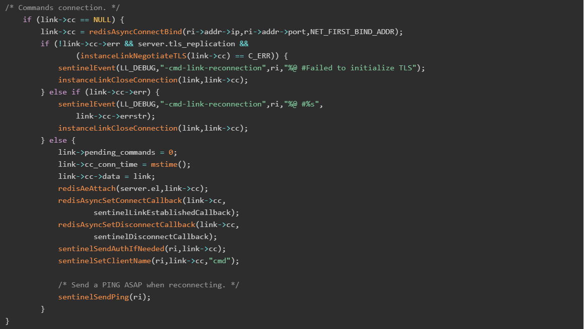 在sentinel.c中的sentinelReconnectInstance函数中,命令连接的初始化如下: