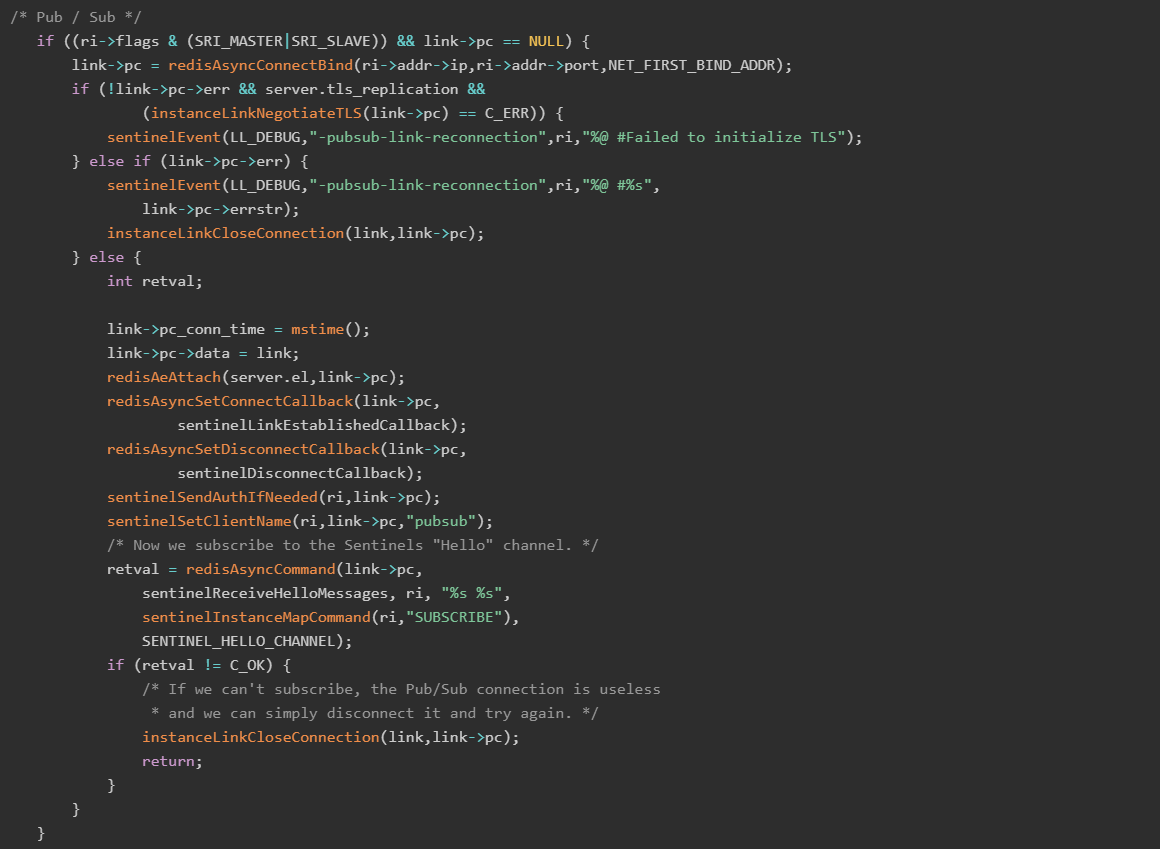 在sentinel.c中的sentinelReconnectInstance函数中,发布订阅连接初始化如下: