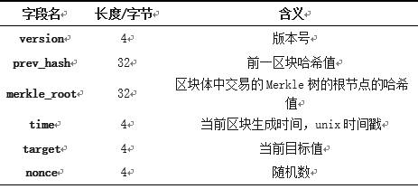 表1.1 区块头部信息