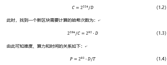 其中最大目标值和当前目标值都是256位长度,最大目标值是难度为1时的目标值,即2224。假设当前难度为,算力为,当前目标值为,发现新区块的平均计算时间为,则