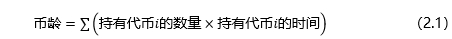 随着参与比特币挖矿的人越来越多,PoW的许多问题逐渐显现,例如随着算力竞争迅速加剧,获取代币需要消耗的能源大量增加,记账权也逐渐向聚集了大量算力的“矿池”集中[6-9]。为此,研究者尝试采用新的机制取代工作量证明。PoS的概念在最早的比特币项目中曾被提及,但由于稳健性等原因没被使用。PoS最早的应用是点点币(PPCoin),PoS提出了币龄的概念,币龄是持有的代币与持有时间乘积的累加,计算如公式(1.4)所示。利用币龄竞争取代算力竞争,使区块链的证明不再仅仅依靠工作量,有效地解决了PoW的资源浪费问题。