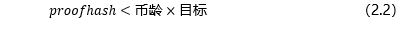 其中持有时间为某个币距离最近一次在网络上交易的时间,每个节点持有的币龄越长,则其在网络中权益越多,同时币的持有人还会根据币龄来获得一定的收益。点点币的设计中,没有完全脱离工作量证明,PoS机制的记账权的获得同样需要进行简单的哈希计算: