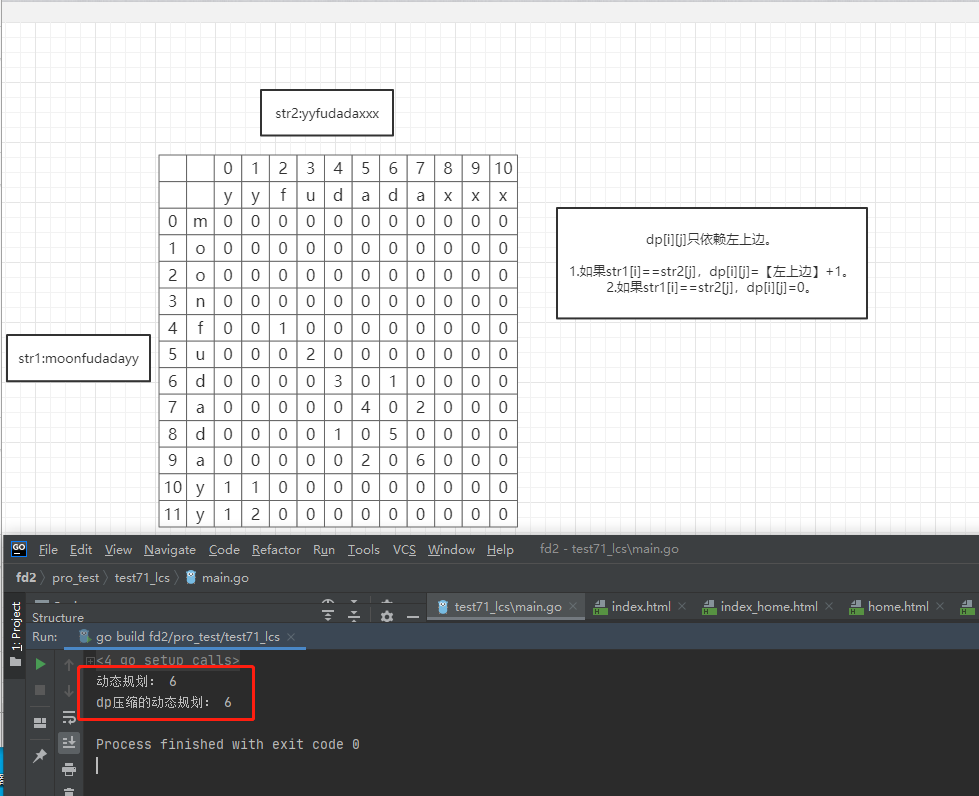 fmt.Println("dp压缩的动态规划:", lcs2(str1, str2))
