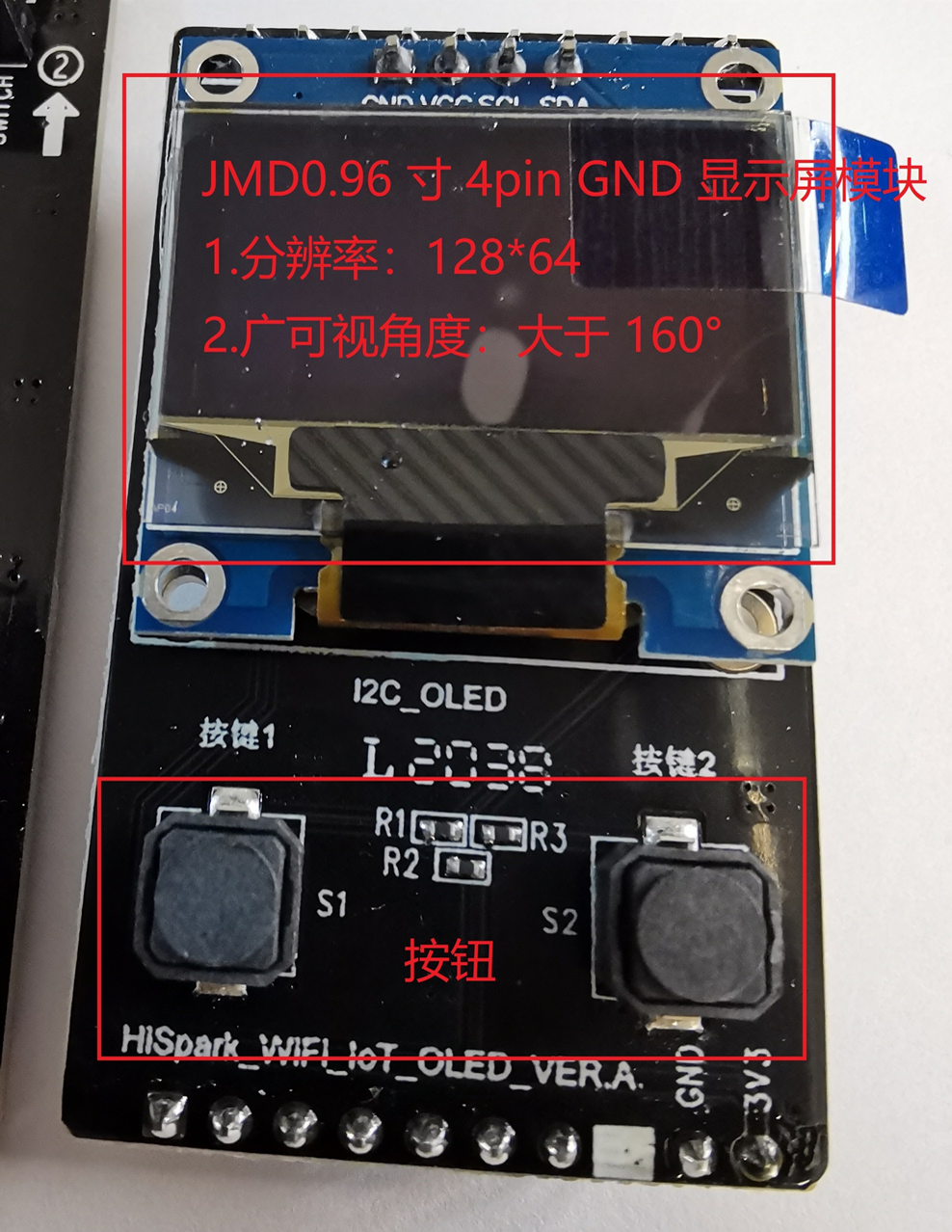 一块HiSpark WiFi IoT OLED,挺喜欢这显示屏,可视角度大,清晰。如图4-1所示: