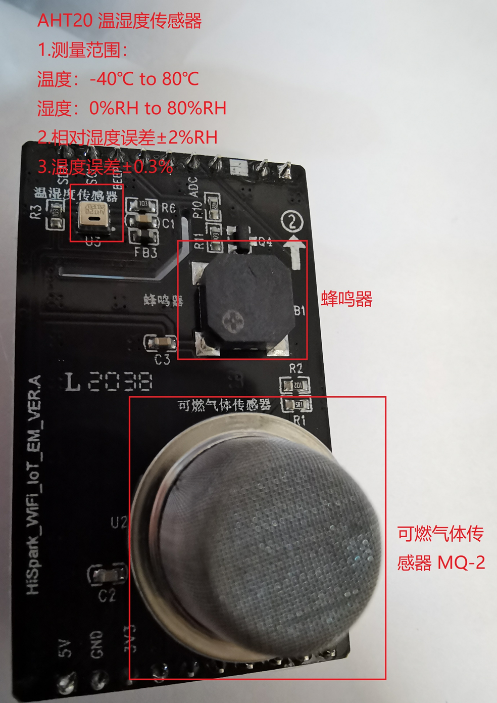 HiSpark WiFi IoT 环境监测板,如图7-1,温湿度传感器用的是AHT20,这个型号还是不错的,但想着直接外露会不会不大好。