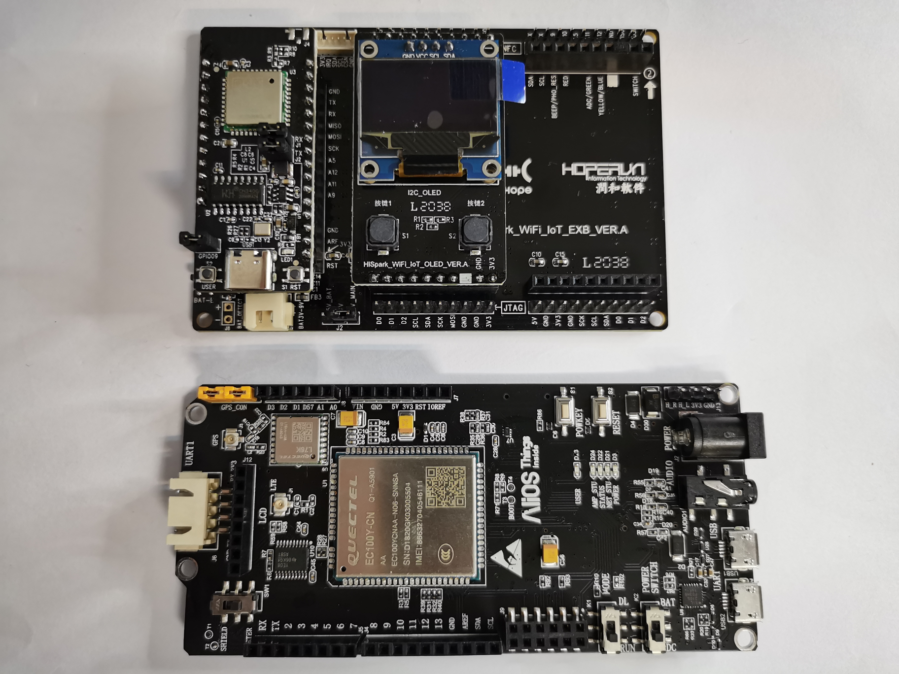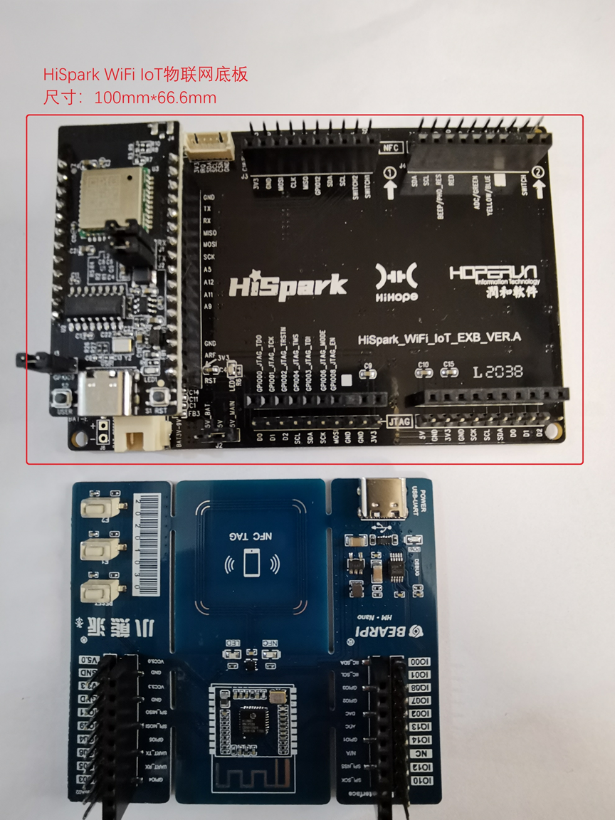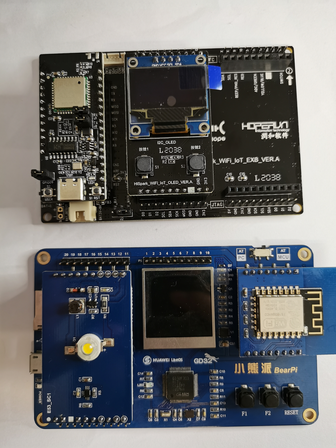 HiSpark WiFi IoT物联网板(安装部分功能板形态)与小熊派(GD)比较,如图12-4: