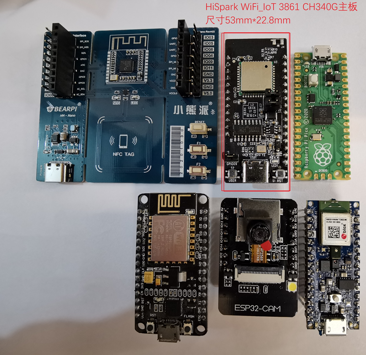 HiSpark WiFi_IoT 3861 CH340G主板对比其它开发板:如图10-1所示: