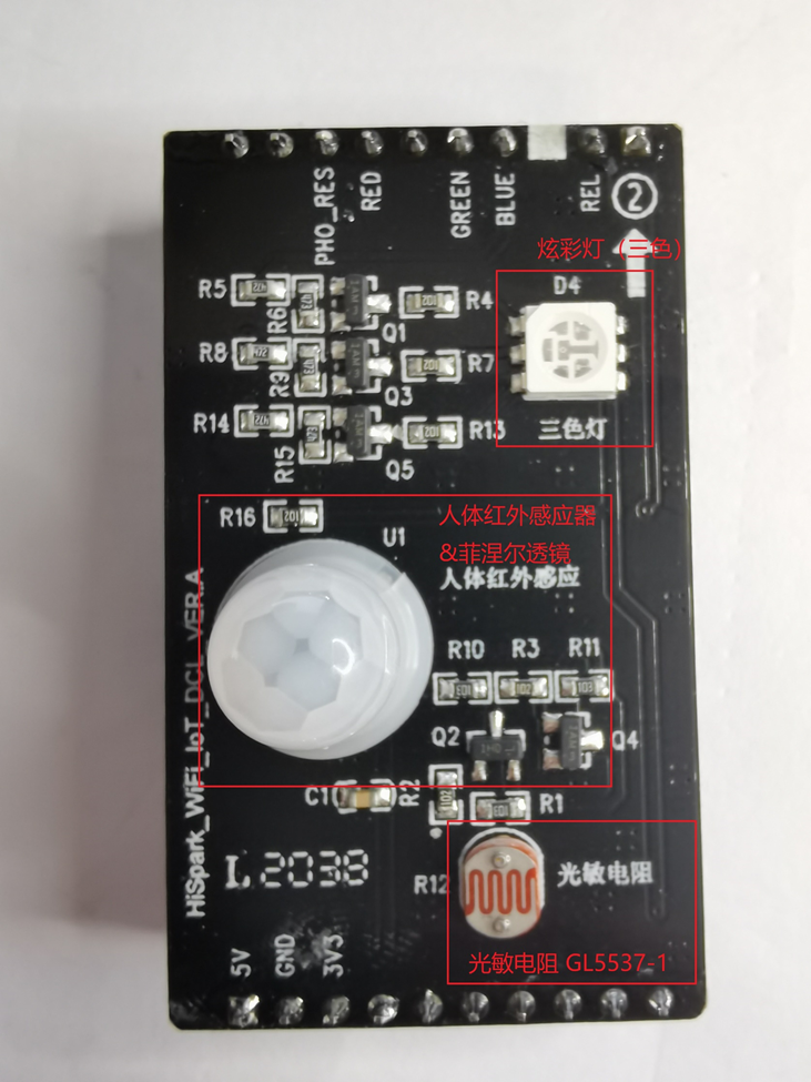 HiSpark WiFi IoT智能( 炫彩) 灯板(图9-1):人体红外感应器型号是AS312,人体探测敏感元将感应到人体移动信号通过甚高阻抗差分输入电路耦合到数字智能集成电路芯片上,数字智能集成电路将信号转化成 15 位 ADC 数字信号,当 PIR 信号超过选定的数字阈值时就会有 REL 电平输出。特别内置红外传感器的二阶巴特沃斯带通滤波器,屏蔽其他频率的输入干扰。