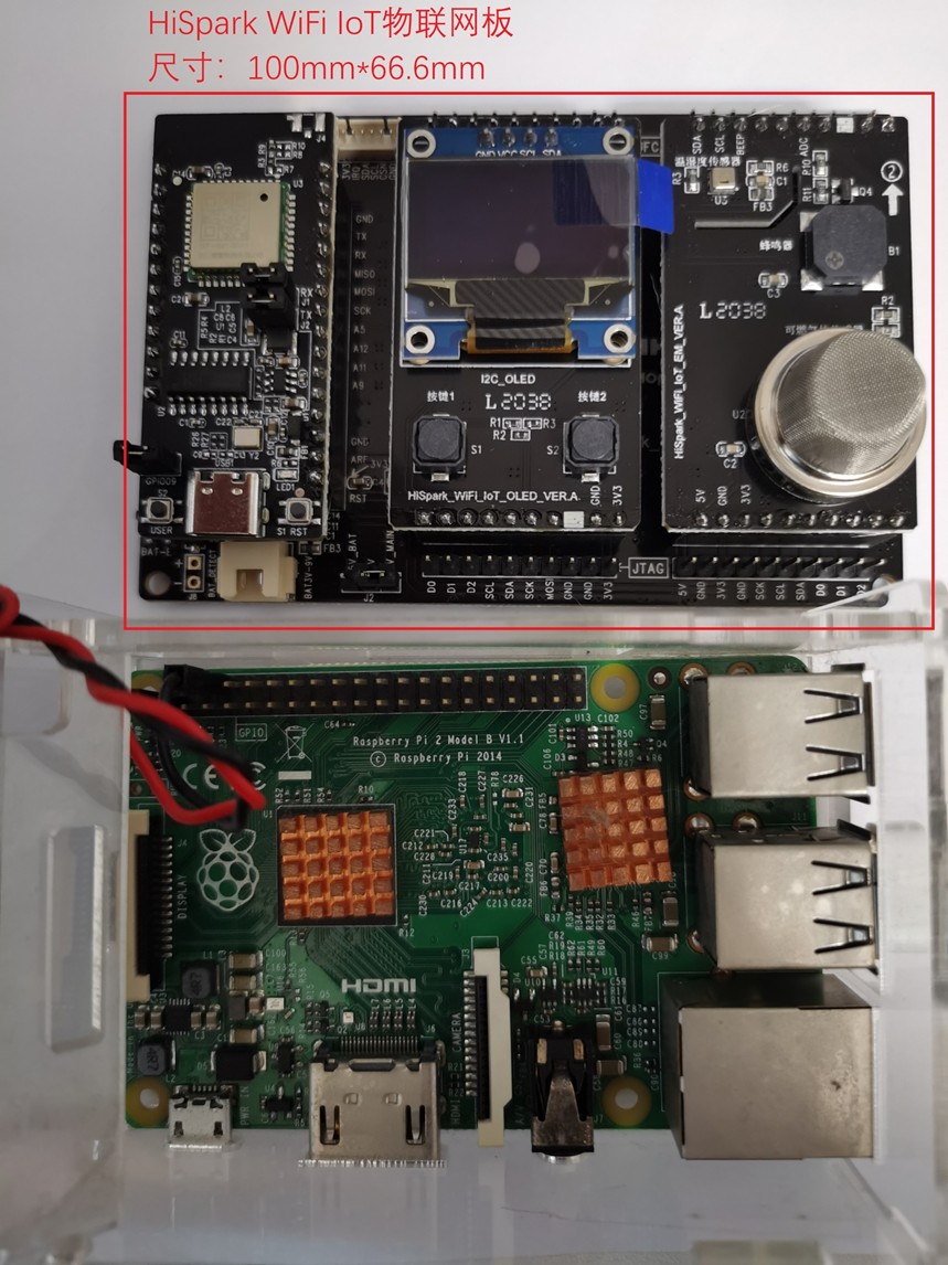 HiSpark WiFi IoT物联网板(安装部分功能板形态)与Atlas200DK对比,如图12-2,12-3: