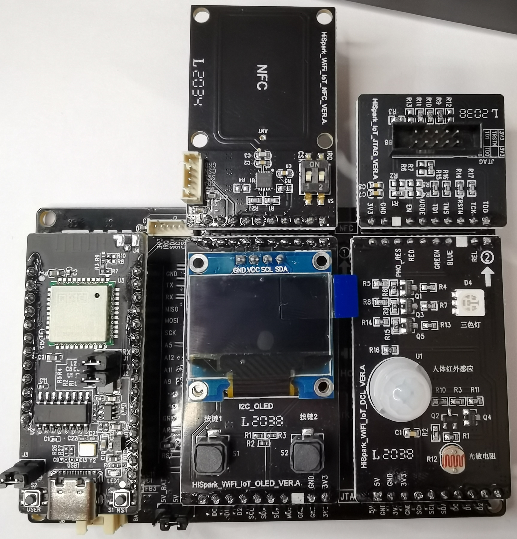 HiSpark WiFi IoT物联网板(安装部分功能板形态)如图12-1: