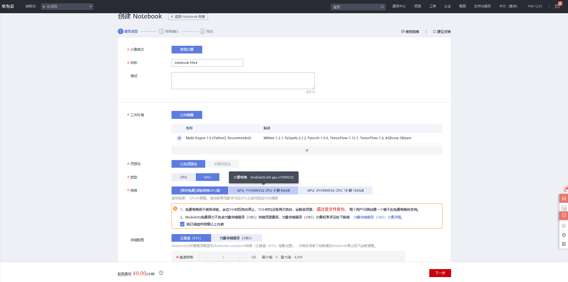 登陆ModelArts控制台https://www.huaweicloud.cn/product/modelarts.html -> 开发环境 -> Notebook -> 创建