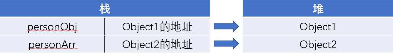 引用类型的值是同时保存在栈内存和堆内存中的,那么它的储存结构是这样的: