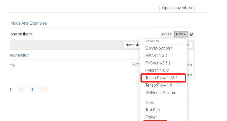 点击打开后,点击右上角的"New",然后创建TensorFlow-1.13.1开发环境