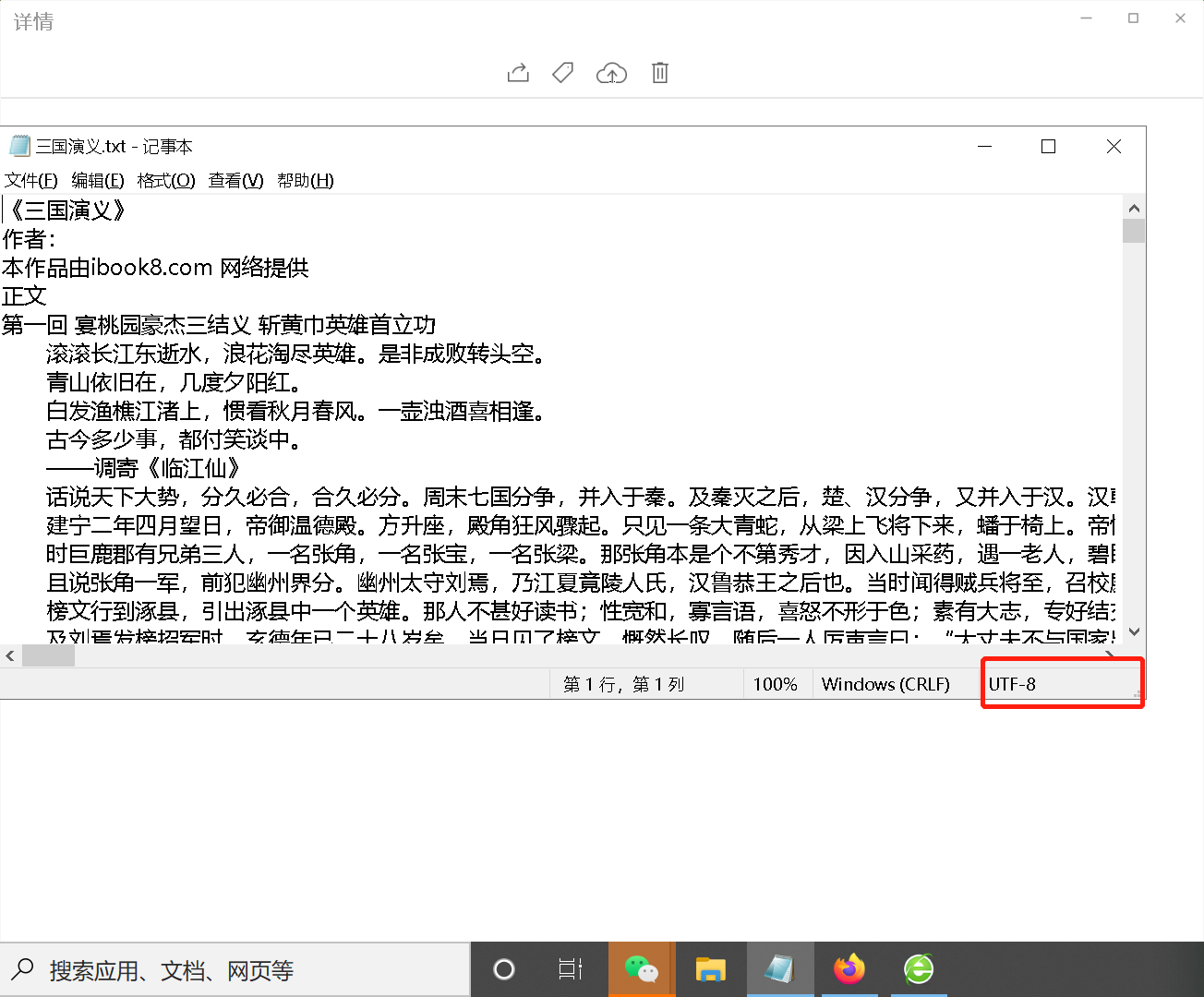1,可以使用Visual打开三国演义.txt
