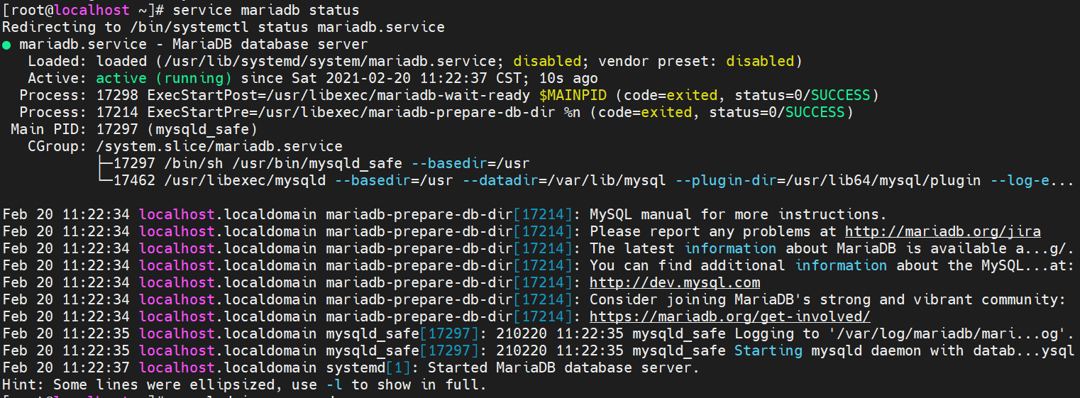 service mariadb status