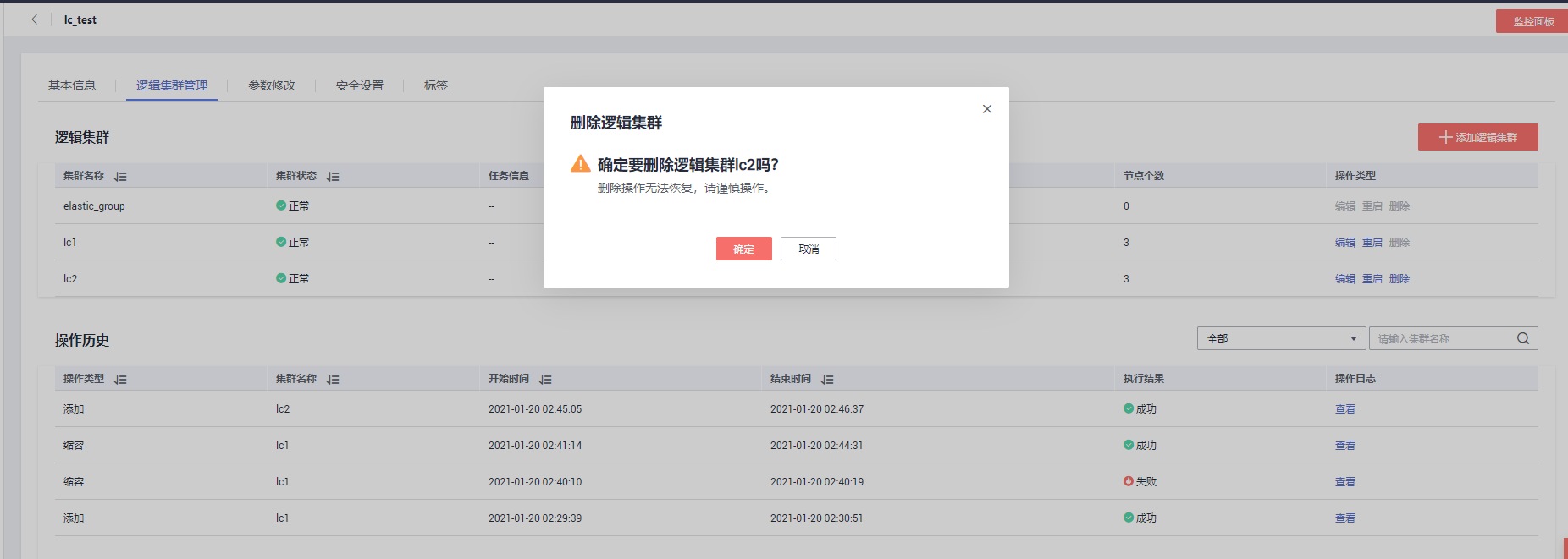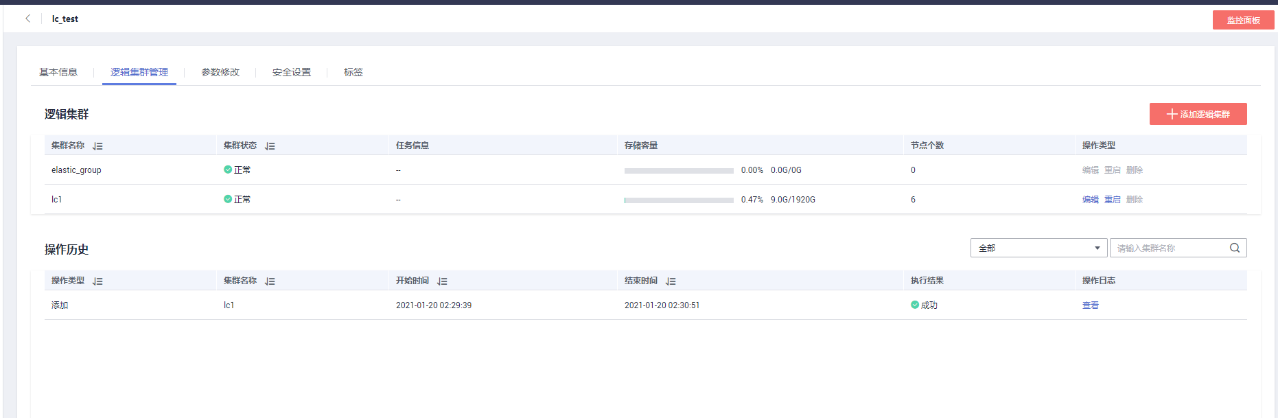 所有逻辑集群管理的操作都将记录操作日志,方便查询操作记录,也方便在某个操作失败时查看失败原因。