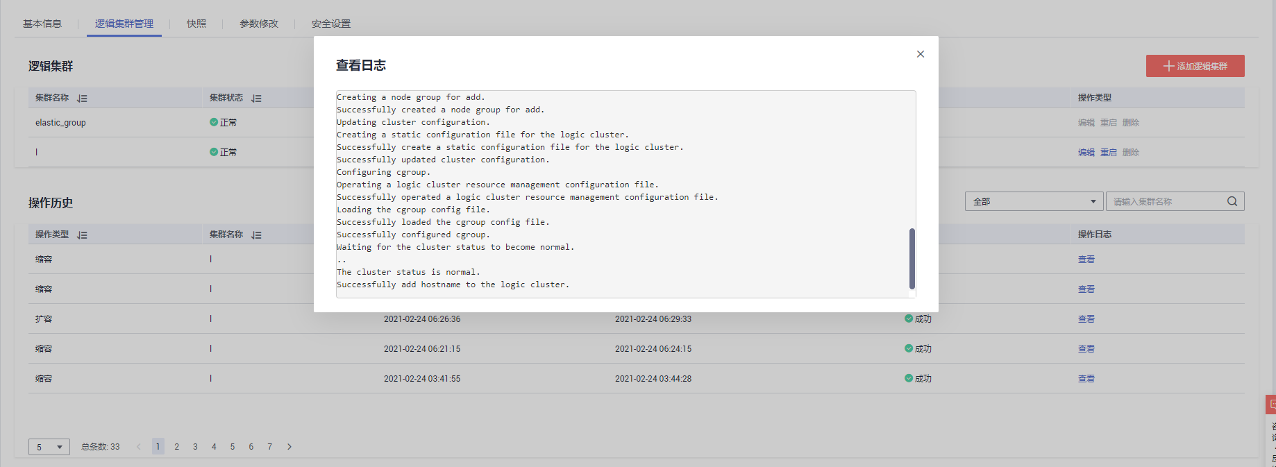 查看逻辑集群操作日志