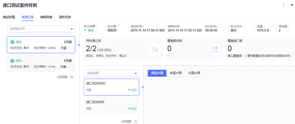 3.执行完成后,单击接口测试套件任务名称,页面跳转到对应测试套件详情页面,可以查看详细执行结果。